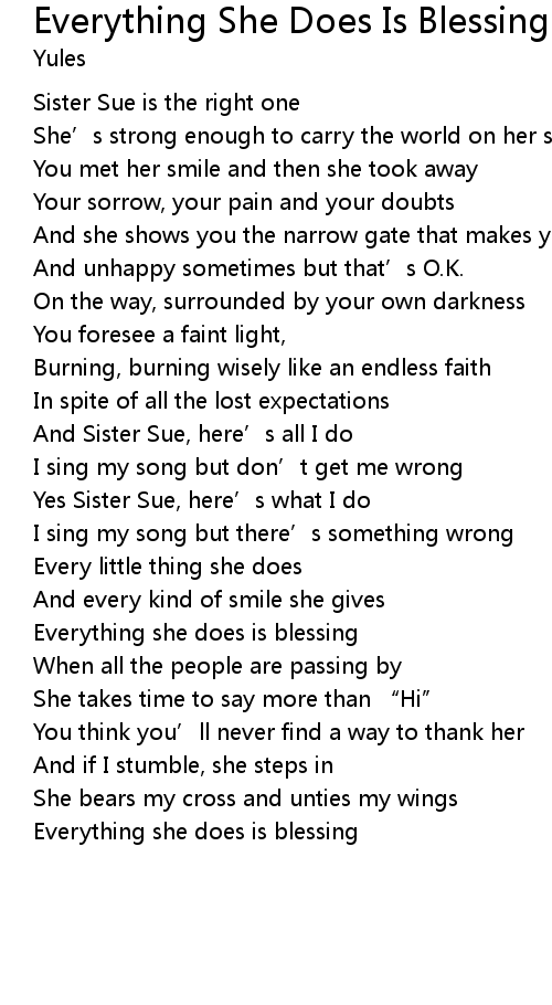 | [01:17.80] | And Sister Sue, here’s all I do |