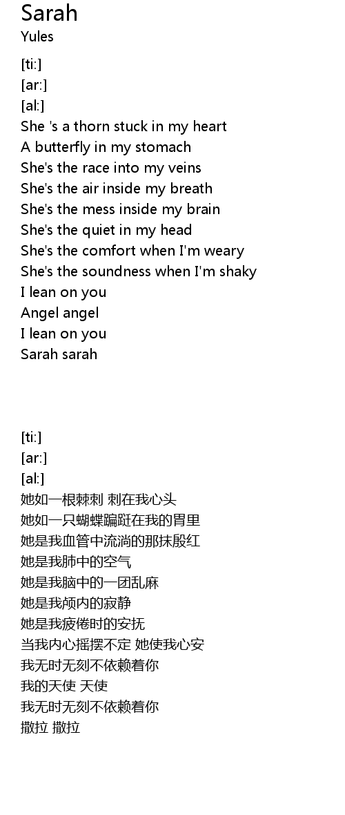 | [02:22.65] | Sarah sarah |