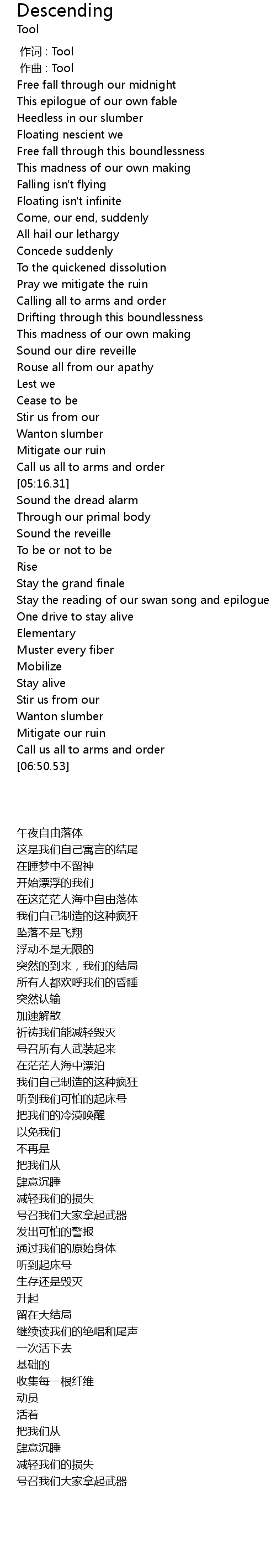 | [06:09.37] | Stay the reading of our swan song and epilogue |