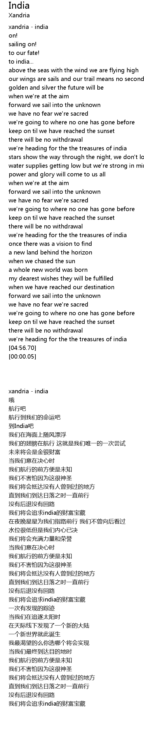 | [04:39.93] | 我们将会追求india的财富宝藏 |