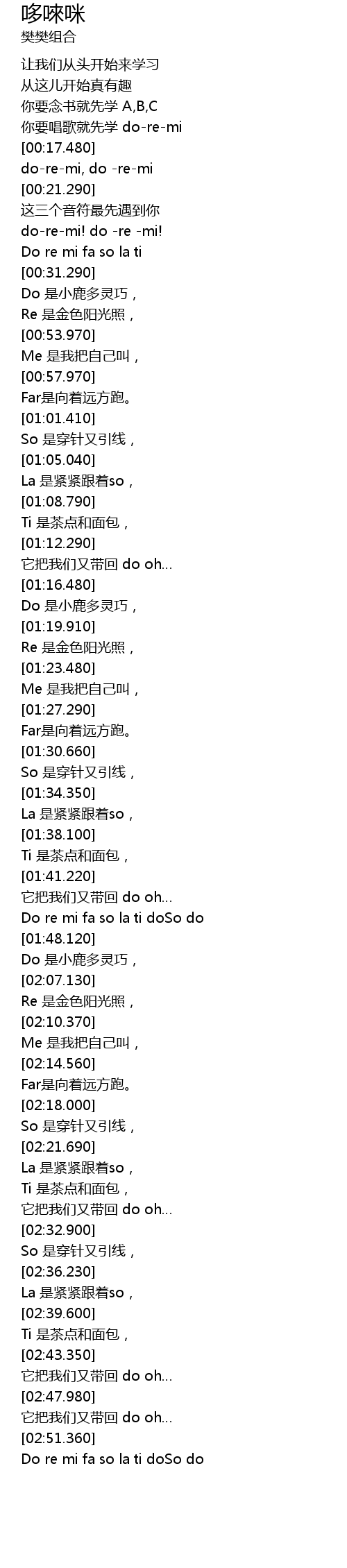 | [00:14.280] | ni yao chang ge jiu xian xue doremi |