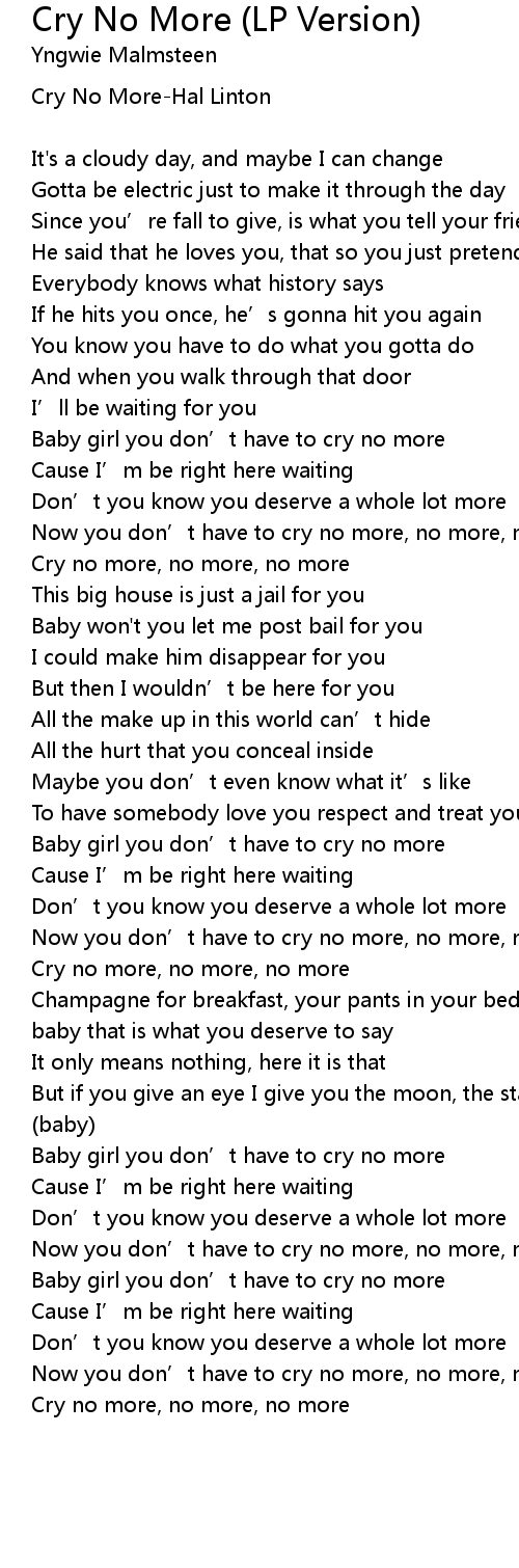 | 歌曲 | Cry No More (LP Version) |