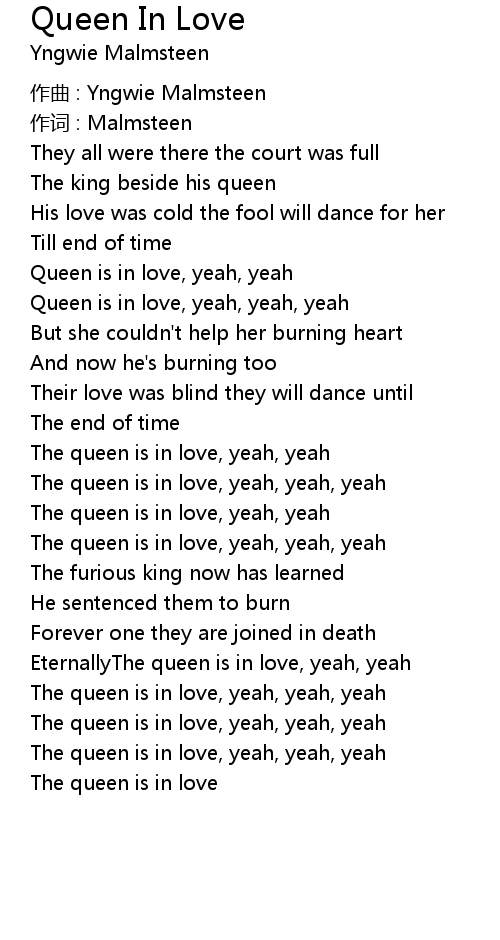 | Queen is in love, yeah, yeah, yeah | |