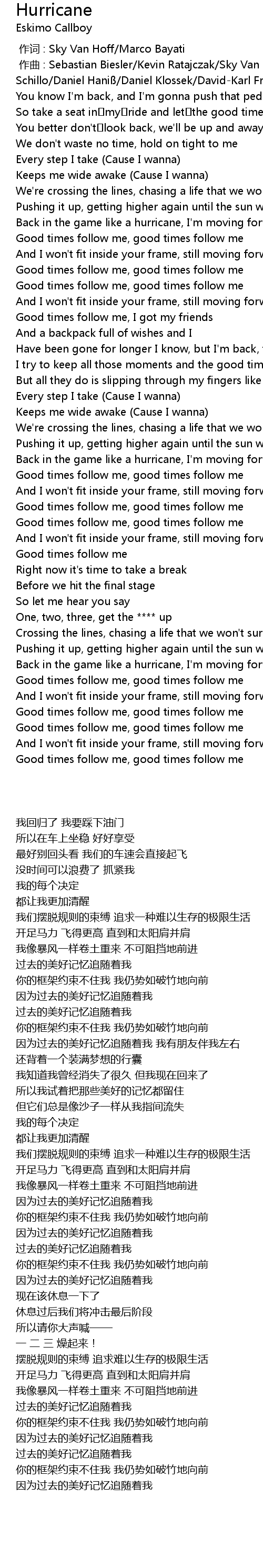 | [00:01.00] | 作曲 : Sebastian Biesler/Kevin Ratajczak/Sky Van Hoff/Pascal Schillo/Daniel Haniß/Daniel Klossek/David-Karl Friedrich/Marco Bayati |