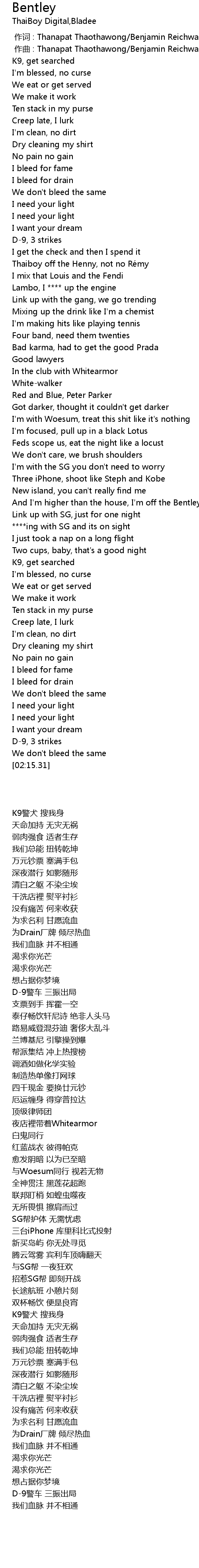| 歌曲 | Bentley |