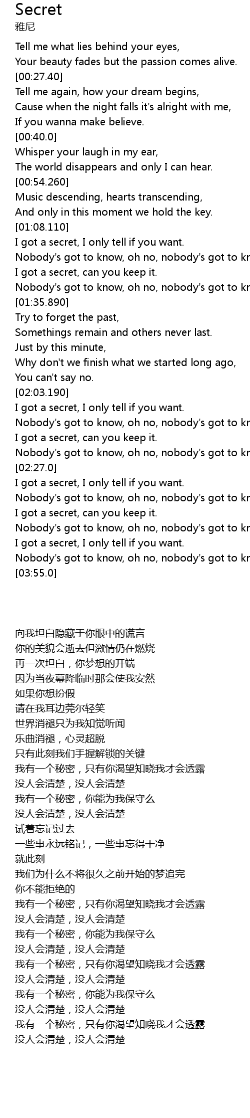 | [03:40.829] | 我有一个秘密,只有你渴望知晓我才会透露 |