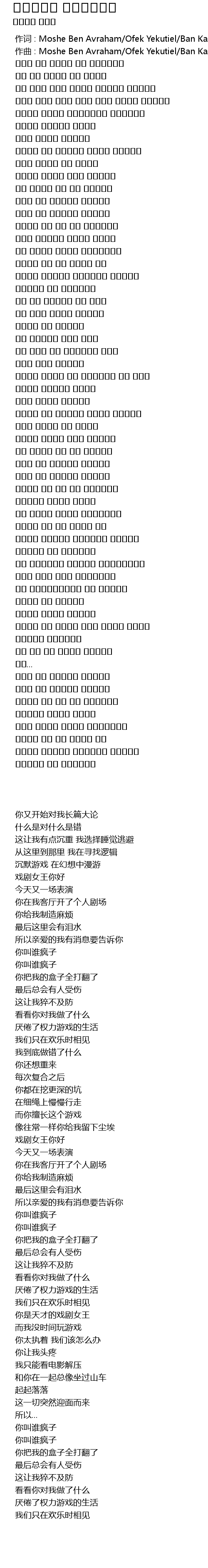 | [00:00.000] | 作词 : Moshe Ben Avraham/Ofek Yekutiel/Ban Kazes |