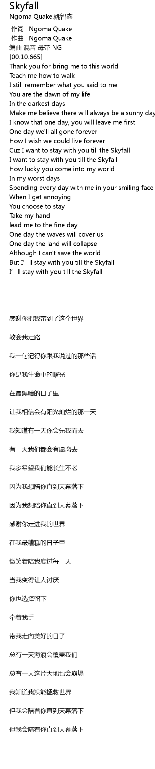 | [00:50.470] | Cuz I want to stay with you till the Skyfall |