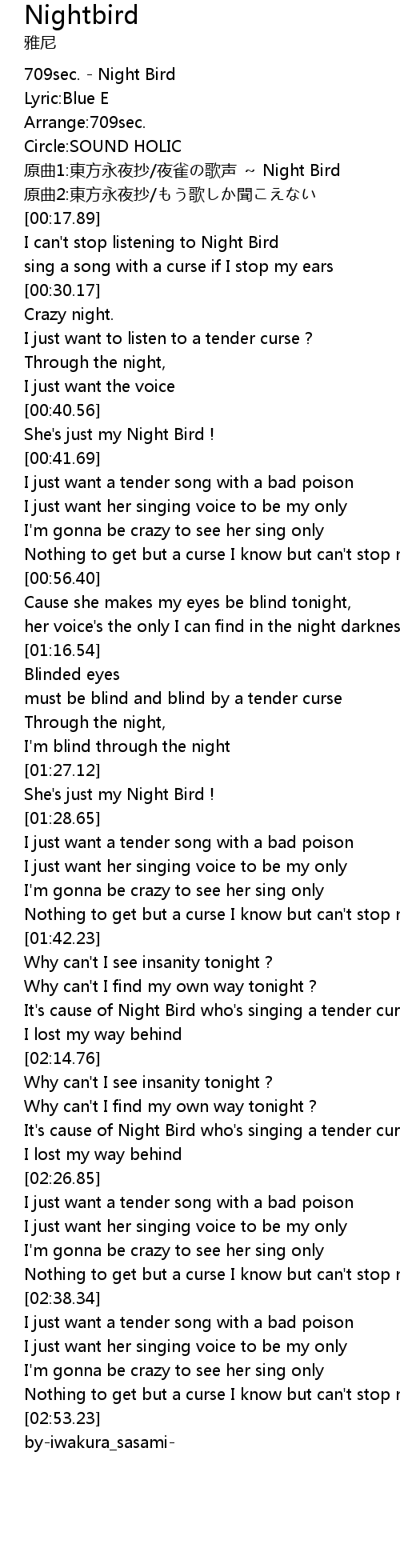 | [00:40.86] | She's just my Night Bird ! |