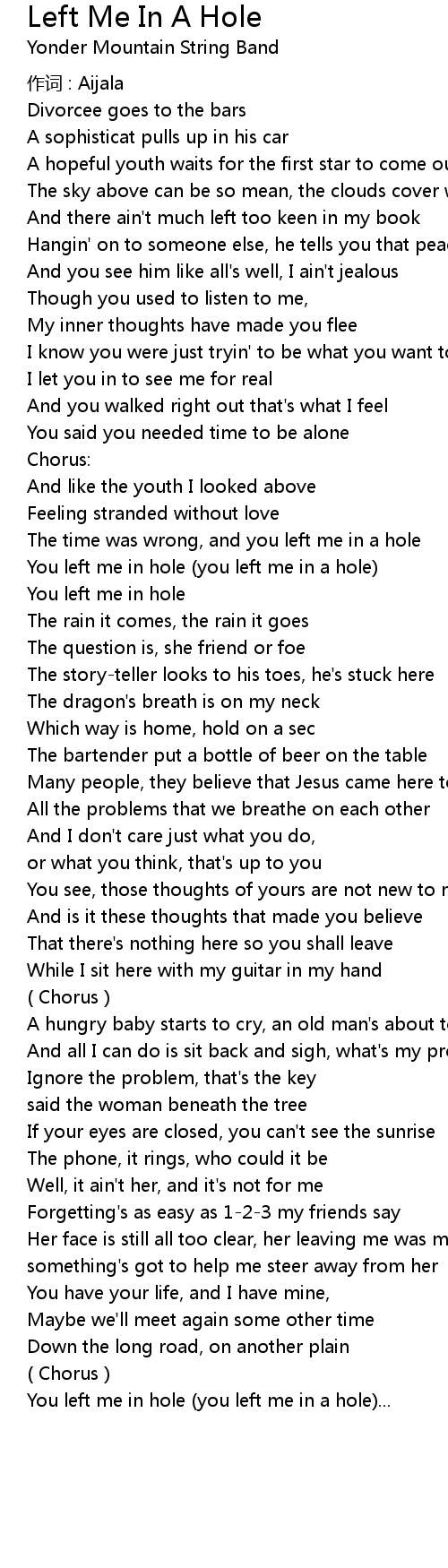 | You left me in hole you left me in a hole... |