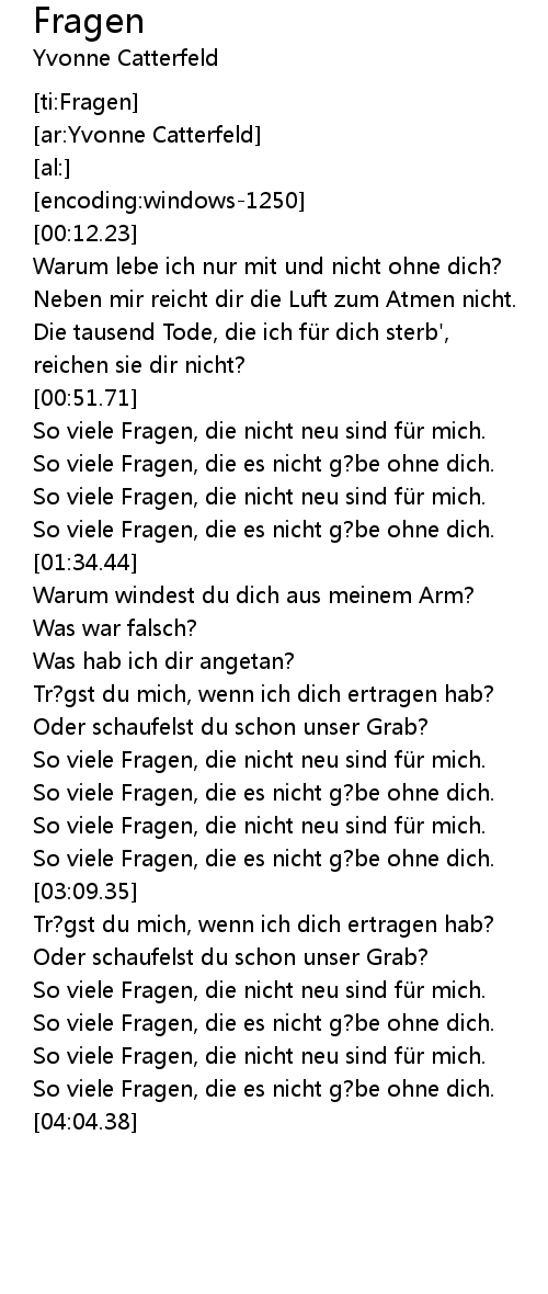 | [02:22.00] | So viele Fragen, die es nicht g? be ohne dich. |
