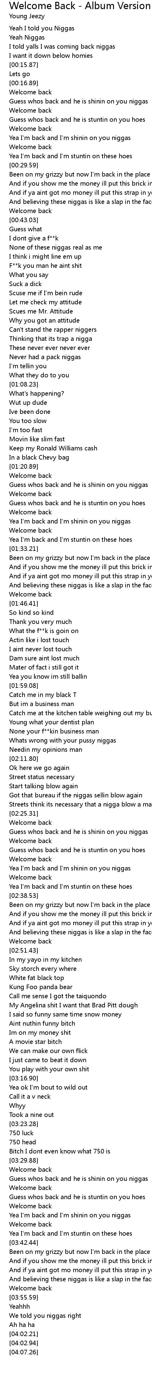 Yea I'm back and I'm shinin on you niggas |