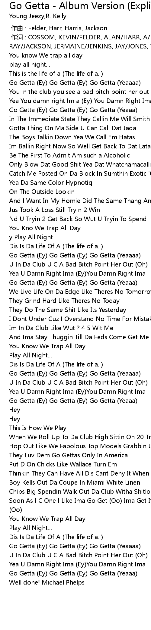 | 歌曲 | Go Getta - Album Version (Explicit) |