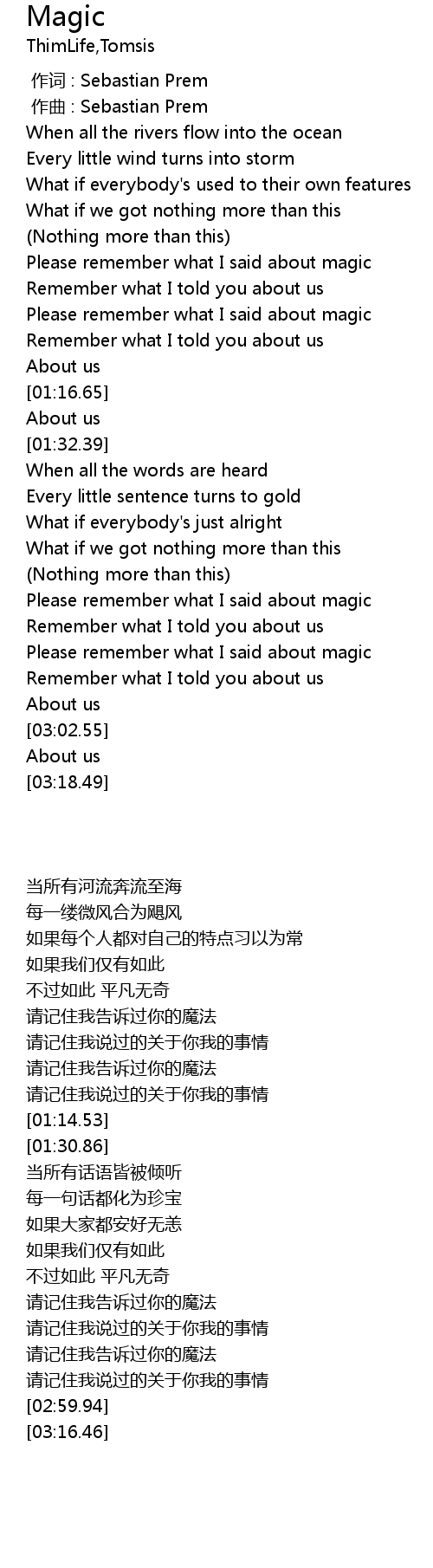 | [00:43.65] | Please remember what I said about magic |