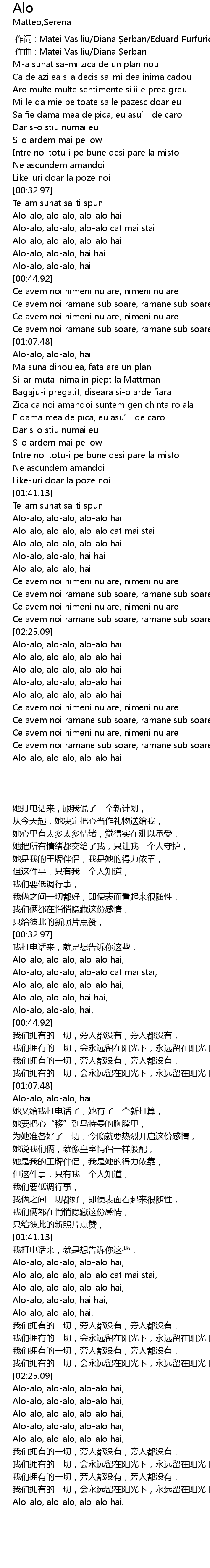 | [00:36.32] | Alo-alo, alo-alo, alo-alo cat mai stai, |