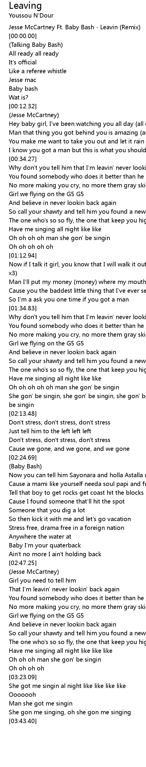Jesse McCartney Ft. Baby Bash - Leavin (Remix) |