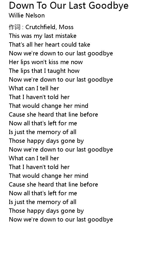 | Now we' re down to our last goodbye | |