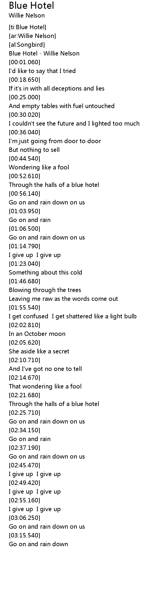 Blue Hotel - Willie Nelson |