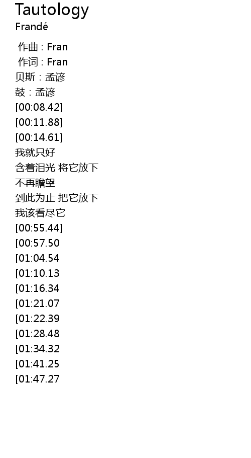 | [02:26.93][01:10.13] | 居然是一首名为同义反覆 的 诗 |