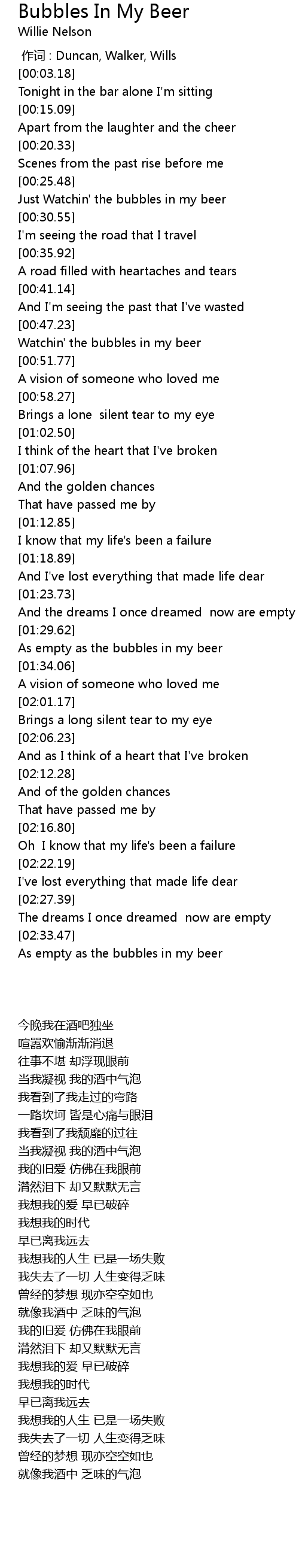| [02:35.10] | As empty as the bubbles in my beer |