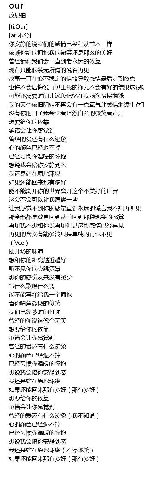 | [00:20.794] | ni an jing de shuo wo men de gan qing yi jing he cong qian bu yi yang |