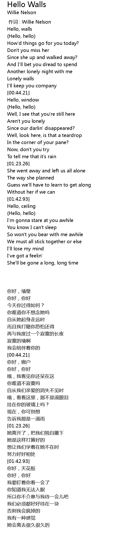 | 歌曲 | Hello Walls |