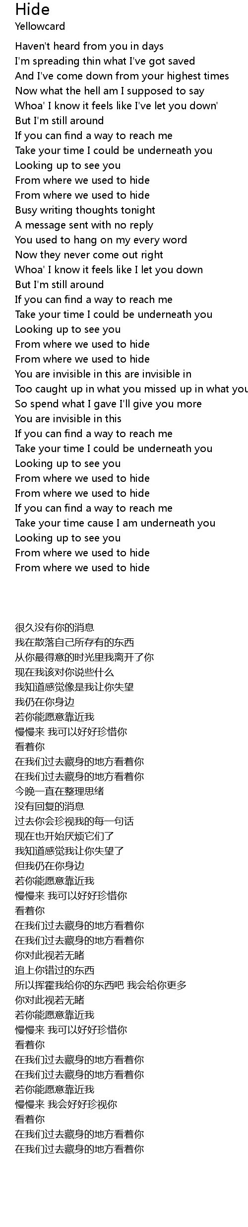 Whoa' I know it feels like I've let you down' |