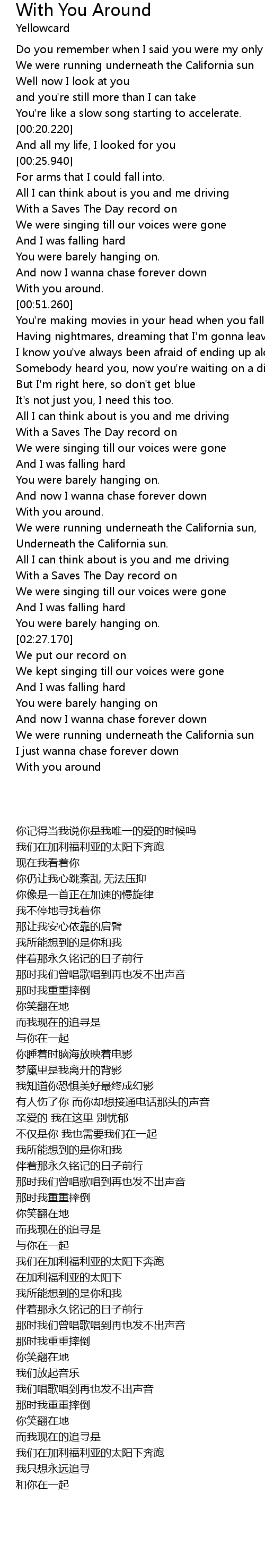| [00:50.330] | With you around. |