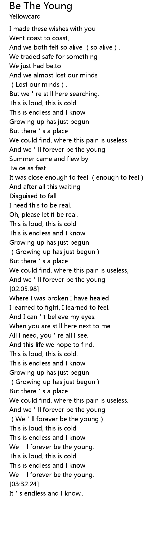 | [03:04.40] | And we ll forever be the young |