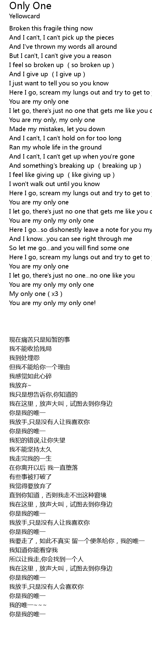 | [00:55.110] | You are my only one |