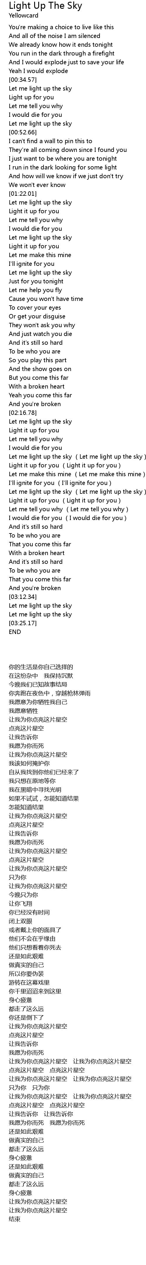 | [02:31.26] | Let me light up the sky (Let me light up the sky) |