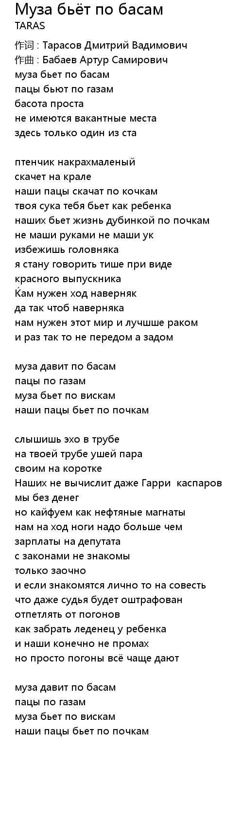 Муза бьёт по басам 歌词