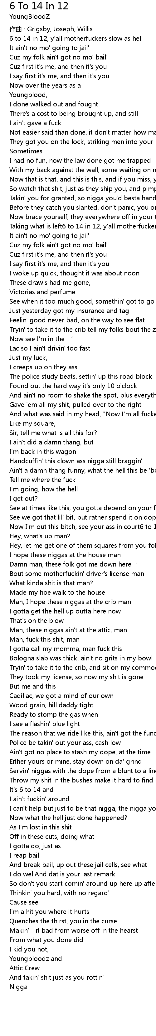 | 歌曲 | 6 To 14 In 12 |