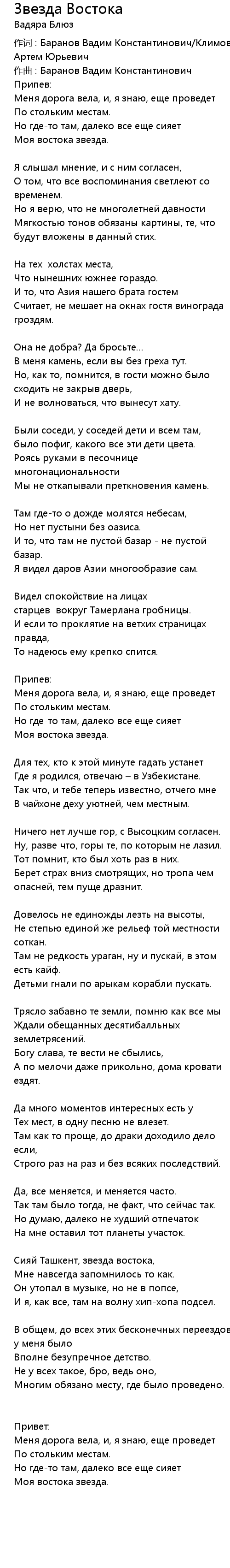 作词 : Баранов Вадим Константинович/Климов Артем Юрьевич |