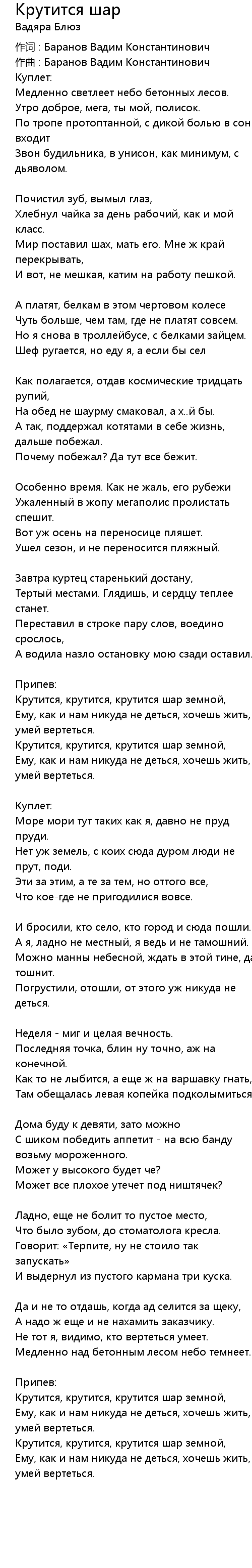 作词 : Баранов Вадим Константинович