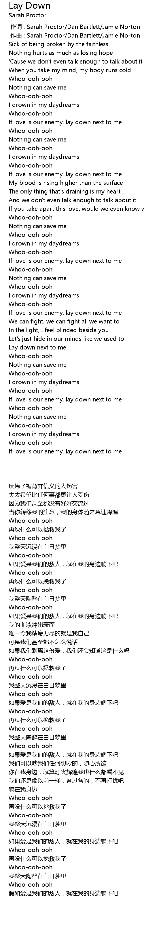 | [00:01.000] | zuò qǔ : Sarah Proctor Dan Bartlett Jamie Norton |