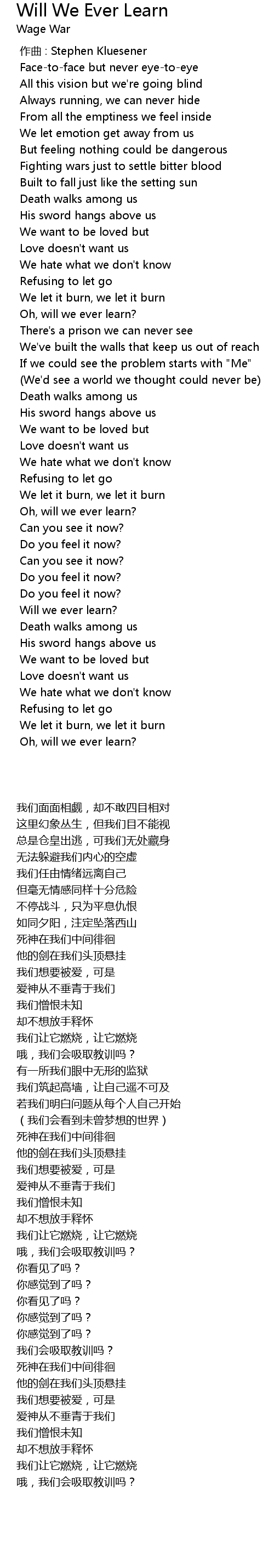 | [00:40.348] | 不停战斗,只为平息仇恨 |