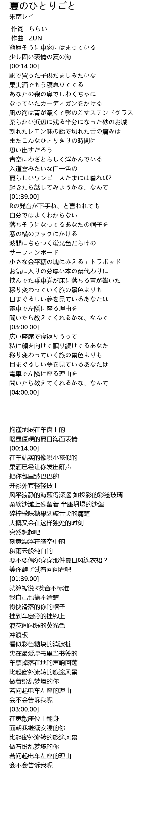 | [02:30.00] | 挟んでた乗車券が床に落ちる音が響いた |