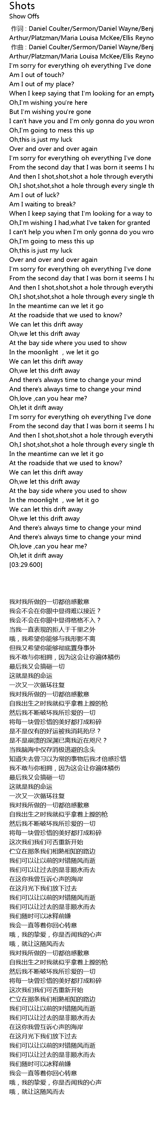 | [02:56.169] | Oh, I shot, shot, shot a hole through every single thing that I loved |