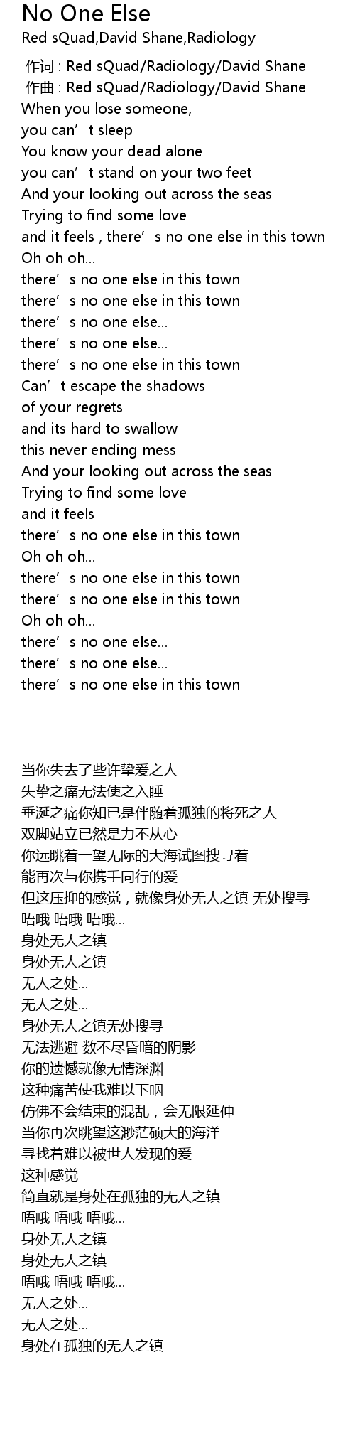 | [00:00.000] | 作词 : Red sQuad/Radiology/David Shane |
