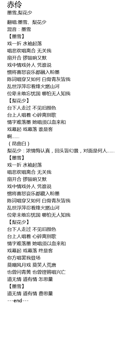 | [00:25.153] | 翻唱:墨雪、梨花少 |
