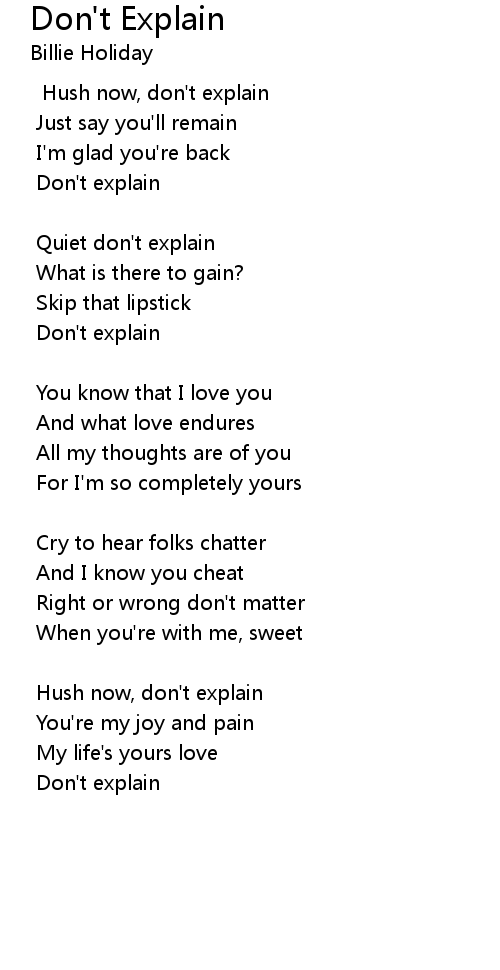 | Hush now, don't explain | |