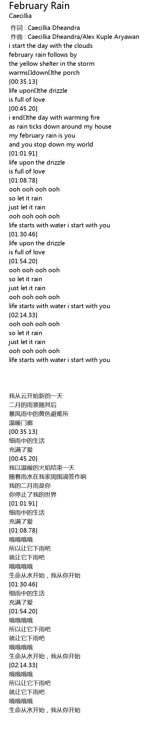 | [00:23.36] | february rain follows by |