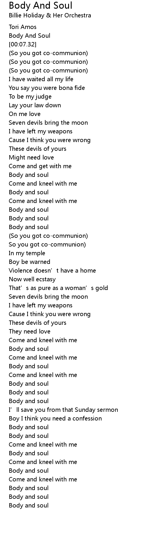 | [03:20.00] | Body and soul |