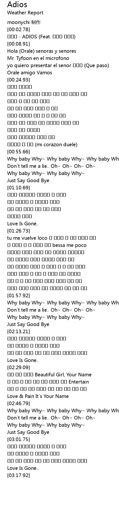 | [00:07.91] | 은지원 - ADIOS (Feat. 미스터 타이푼) |