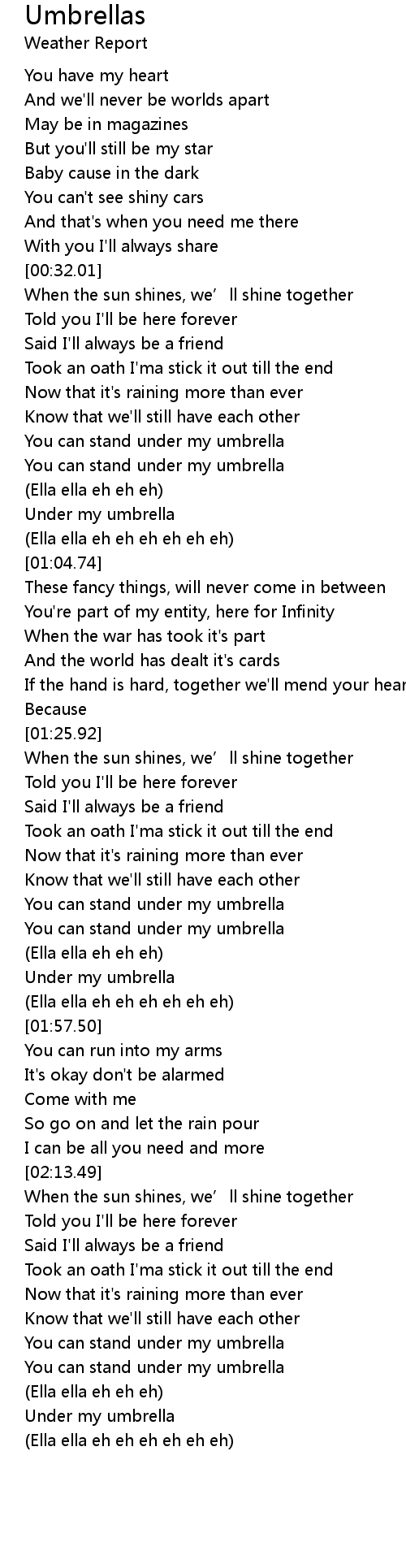 | [00:33.94] | When the sun shines, we' ll shine together |