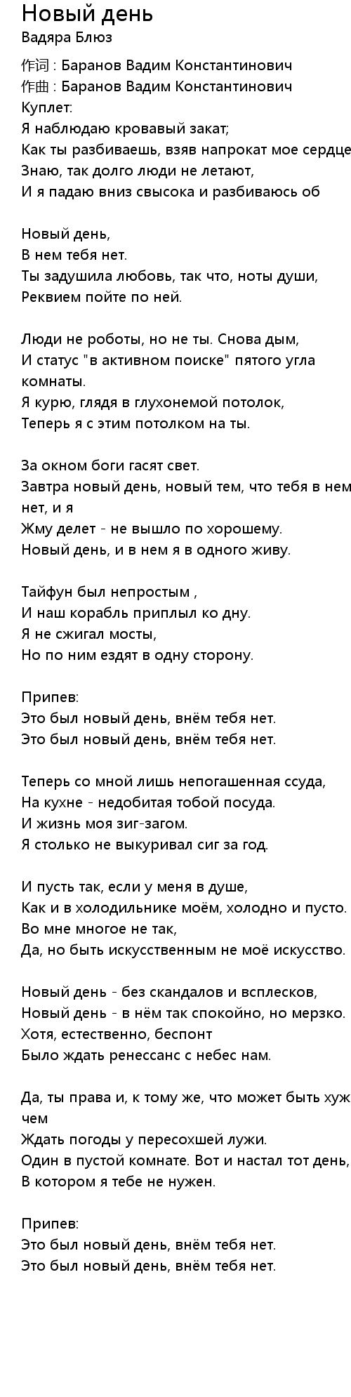 Завтра новый день, новый тем, что тебя в нем нет, и я