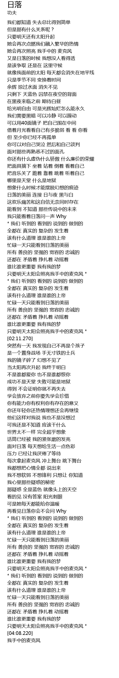 | [04:03.970] | 只要明天太阳会照亮我手中的麦克风 * |