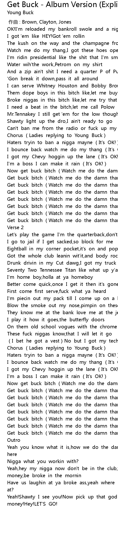 | 歌曲 | Get Buck - Album Version (Explicit) |