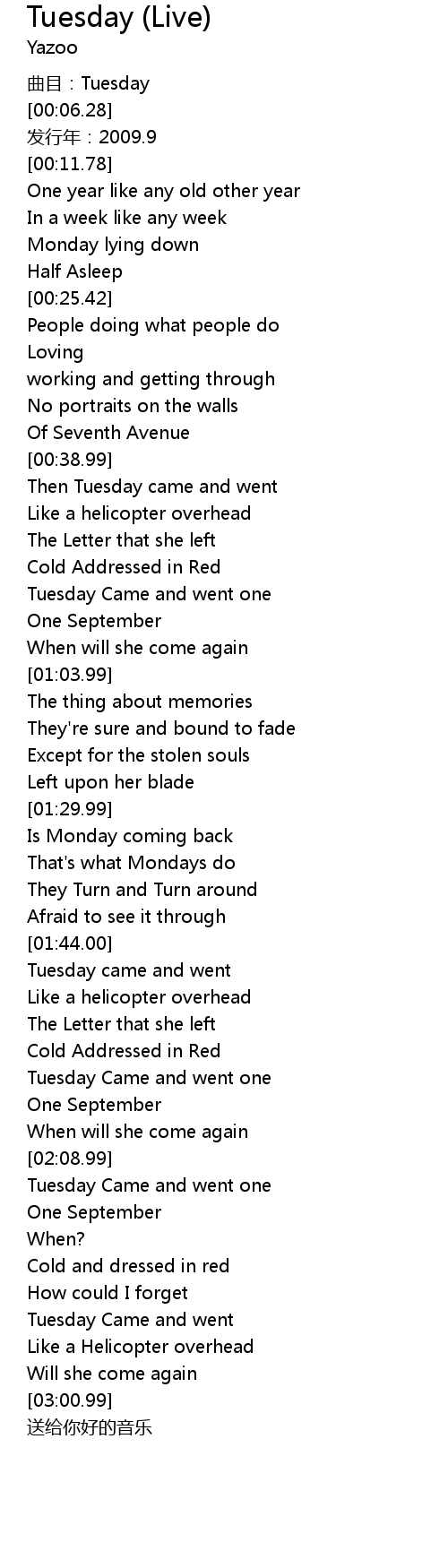 | [03:05.10] | sòng gěi nǐ hǎo de yīn yuè |